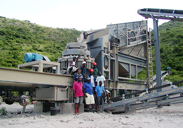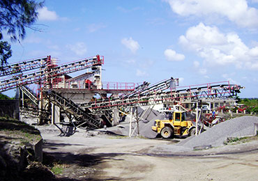 經過F5X1345給料機預篩分,小料直接打入圓錐破的中轉料倉,大料經過顎破破碎之后也進入中轉料倉,中轉料倉同時上兩臺HPT300多缸液壓圓錐破破碎,圓錐破出來的料經過兩臺S5X2460-2新型振動篩篩分
